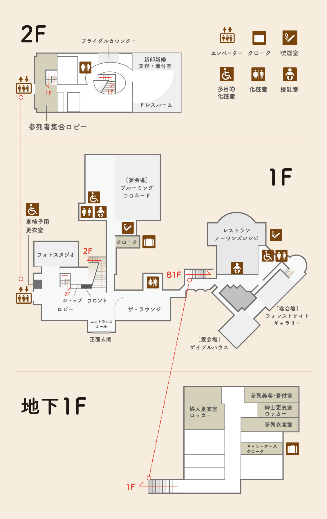集合時間になりましたら、館内マップの2F「参列者集合ロビー」へお越しください。