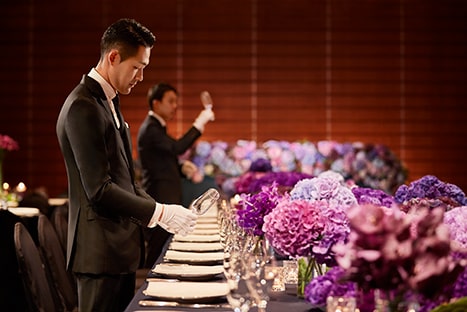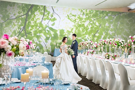 軽井沢ホテルブレストンコートのメインバンケット「ブルーミングコロネード」では、気品溢れる空間でおもてなしの本質にこだわるパーティが実現します。様々なゲストにご満足いただける演出をご用意しています。