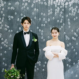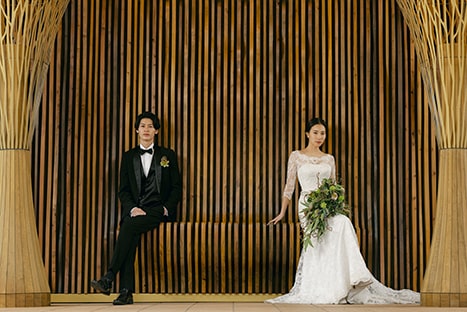 花嫁の美しさを最大限に引き立ててくれるウエディングドレスは、ニットグローブやニットボレロなど冬小物をコーディネート。ぬくもりを纏う冬だけの楽しみ方です。