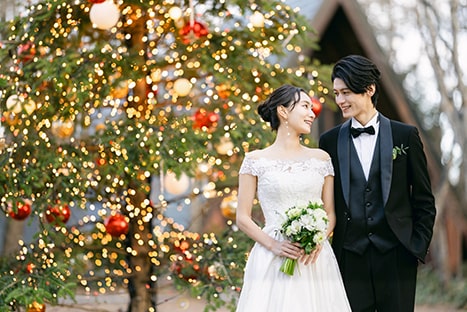 シンボルツリーが飾り付けられた教会の森は、クリスマス一色に。澄みきった空気の中、イルミネーションが輝く幻想的な世界につつまれます。