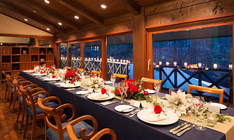 お食事会をお考えの方には、会場費が割引になります。軽井沢らしい非日常を満喫できるパーティを。